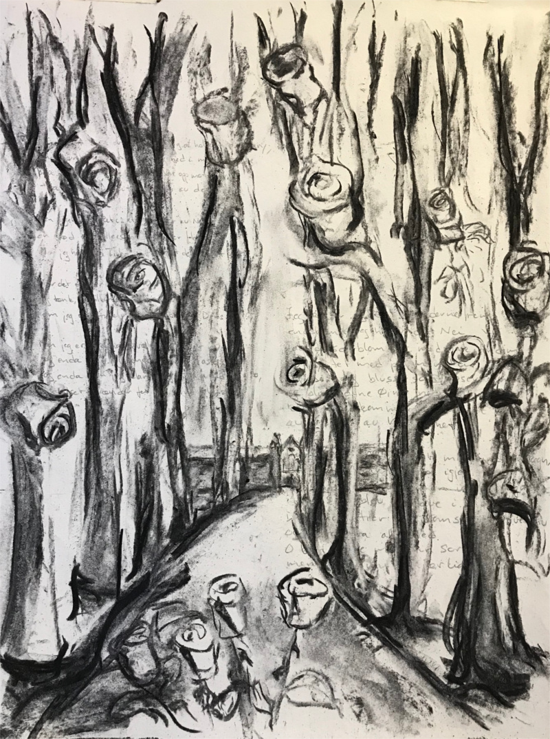 Charcoal, pencil and poem by Hamsun on paper, 48 x 36 cm, 201