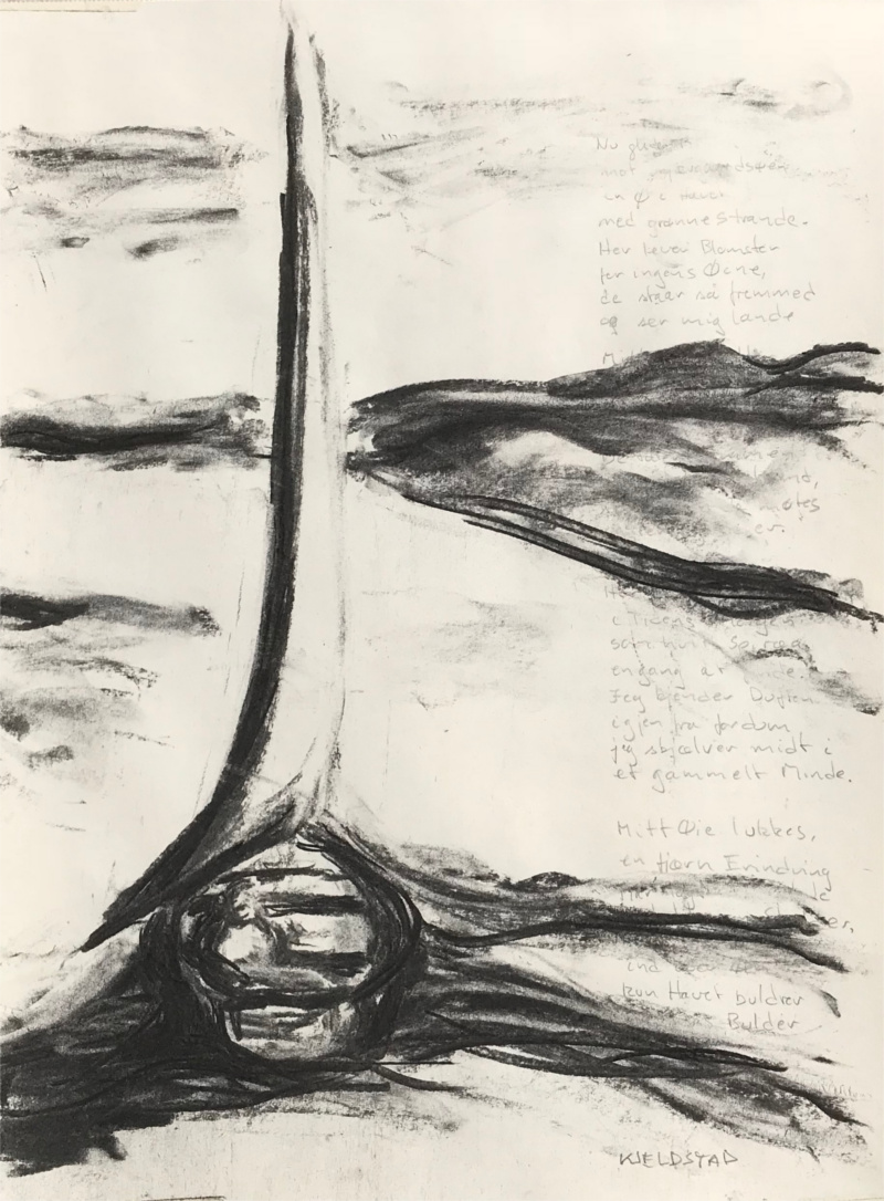Charcoal, pencil and poem by Hamsun on paper, 48 x 36 cm, 2018