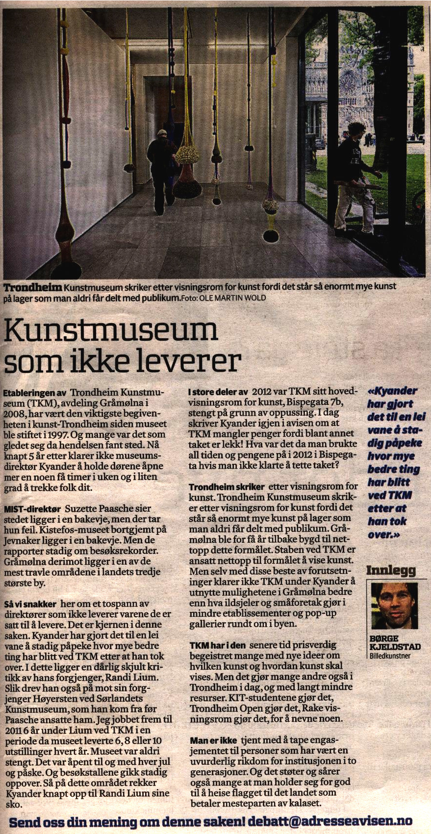 Article on the wanting ahievments of Trondheim Art Museum under its new director