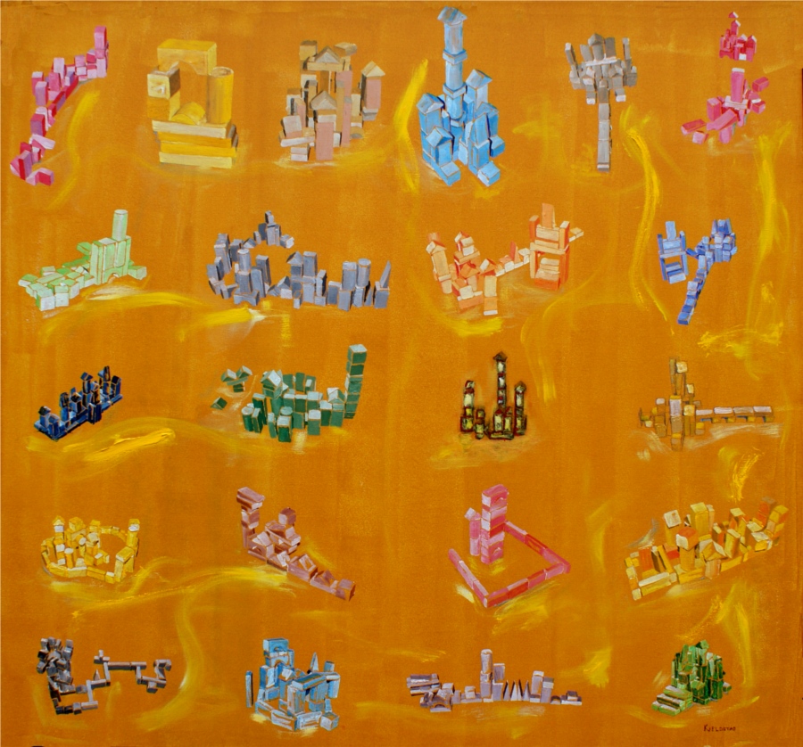 Oil on canvas, 110 x 120 cm, 2012. I discovered that the fantasy of kids playing with wooden pieces exceeded my own. Where my mind was limited to trying to make something I had seen before, theirs were widely open and could make fantastic new things.