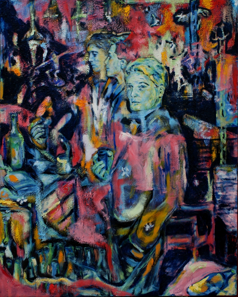Oil on canvas, 100 x 80 cm, 2010. I tried for years to paint myself in as a saluting party member on the left half, but it just did not fit. Later I understood that in the light of my real life, this was correct. If I had continued on my original journey inside A4-life, it would have been similar to buying tickets on the sinking ships on the painting’s right side.