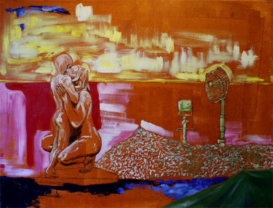 Oil on canvas, 70 x 92 cm, 2015. The military message handling system exporting the concept of love. Thanks to Ingebrigt Vik for an inspiring mother-and-child sculpture.