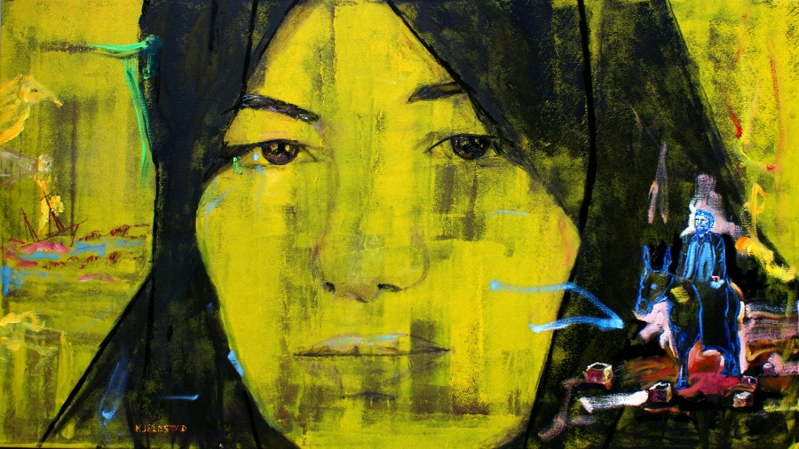 Oil and acrylics on canvas, 90 x 160 cm, 2010. In August 2010 I was out in the streets making this painting in protest against the witch process against Sakineh Mohammedi-Ashtiani by the Iranian regime. This photo of the painting can be freely downloaded for political use. Please spread it around and/or email it to the Iranian embassy in your country, and ask for Sakineh to be set free.