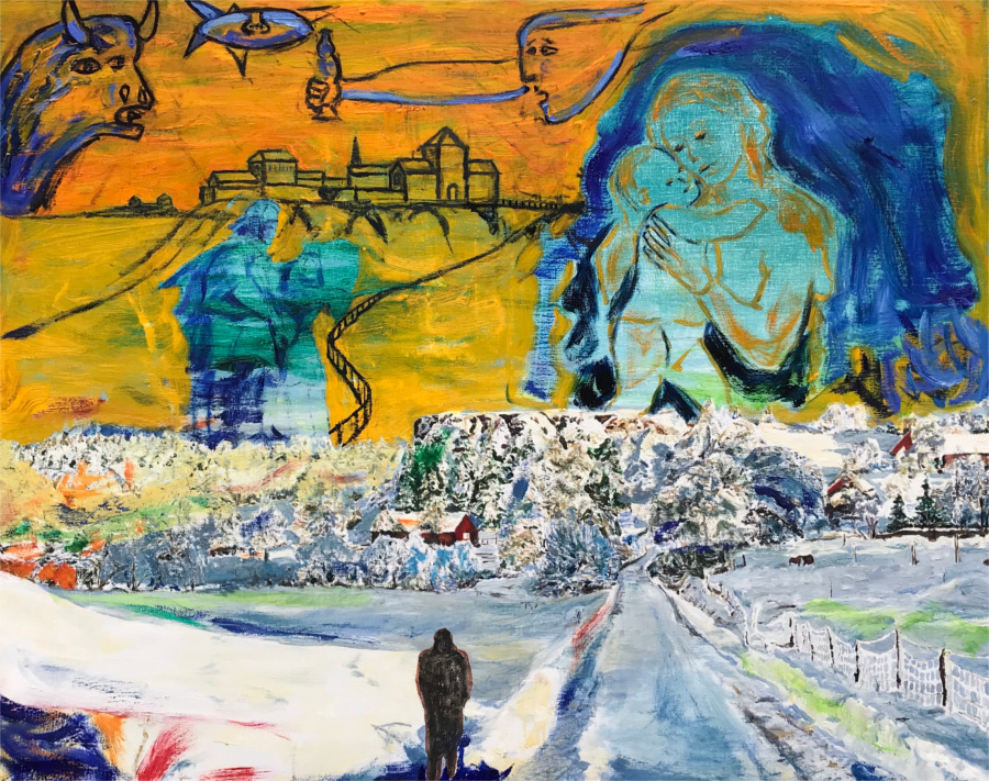 Oil on canvas, 80 x 100 cm, 2013-2018. I have an interest in rebuilding King Sverre's twelfth century castle that once stood on this mountain above Trondheim.