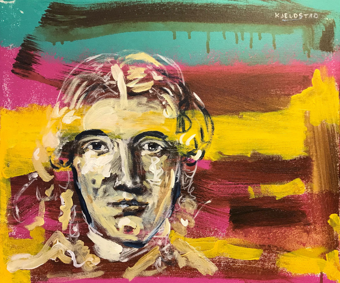 Acrylics on canvas, 46 x 54 cm, 2019. The portrait of Harriet Beecher Stowe is painted after an image on Wikimedia Commons with original source being Project Gutenberg.