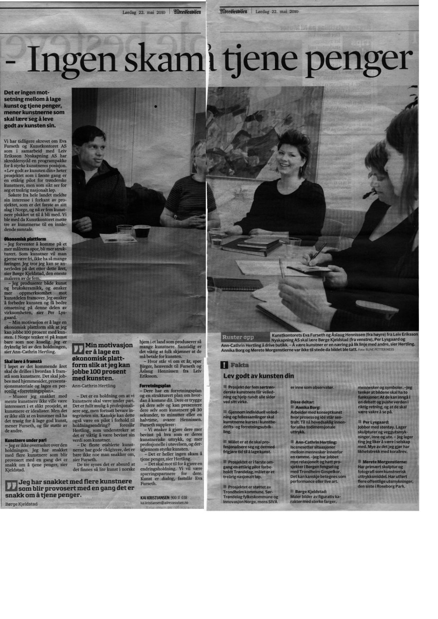 Omtale i Adressa av Lev godt av kunsten din piloten
