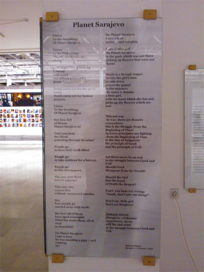 Abdulah Sidran's famous poem. Voice from the besieged. Cry from hell. Images of heaven. Historical museum of BiH.