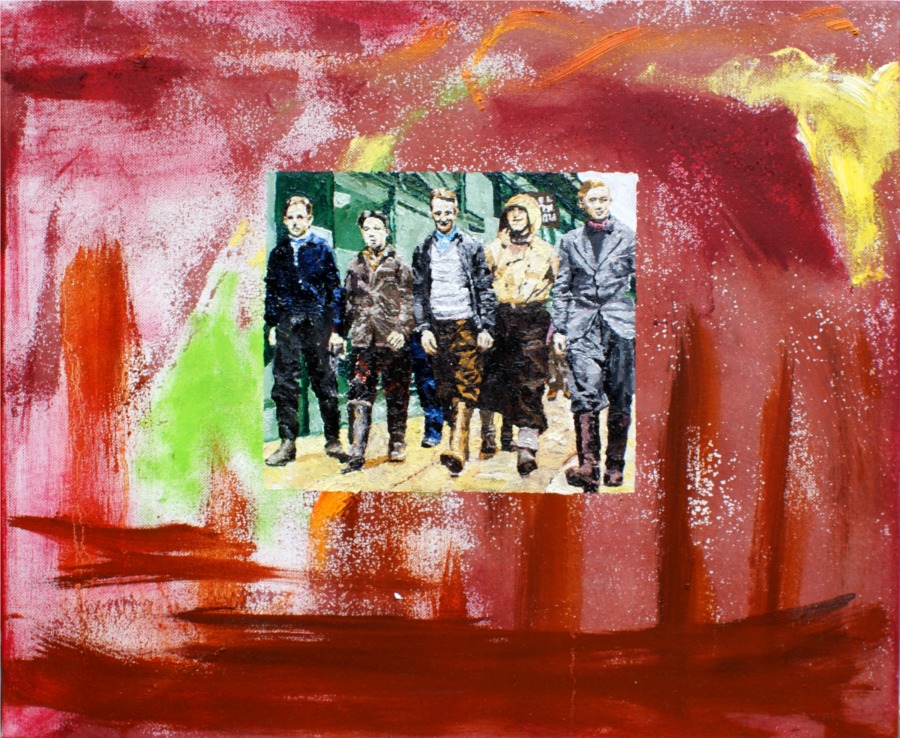 Oil on canvas, 54,5 x 45,5 cm, 2012. The boys from Lofoten in London. It is told that this image went half around the world as a proof of Norwegian resistance. Grandfathers nephew to the right.
