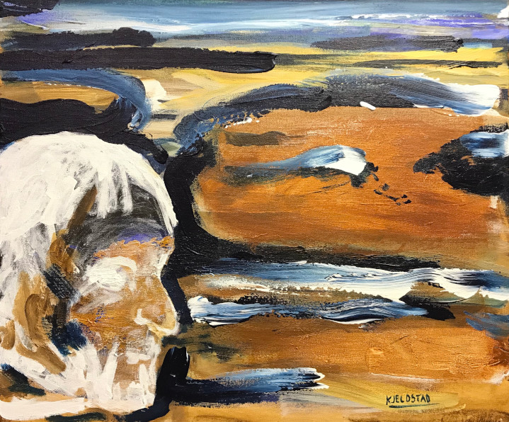 Acryligs on canvas, 46 x 56 cm, 2019. This painting of Robert M Pirsig is painted after photo taken by Ian Glendinning and published under the GNU Free Documentation License.