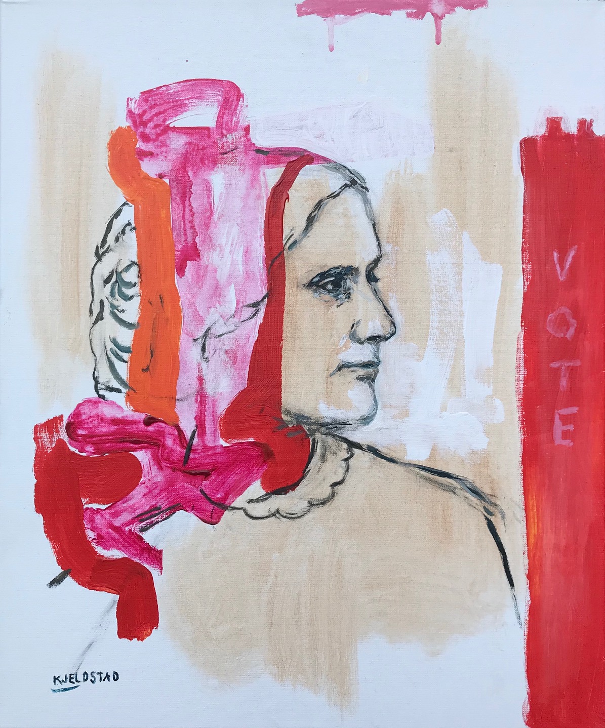 Acrylics on canvas, 60x50 cm, 2020. Painted after engraving by G.E. Perine & Co., NY on Wikipedia. The engraving is public relations portrait of Susan B. Anthony as used in the History of Woman Suffrage by Anthony and Elizabeth Cady Stanton, Volume I, published in 1881