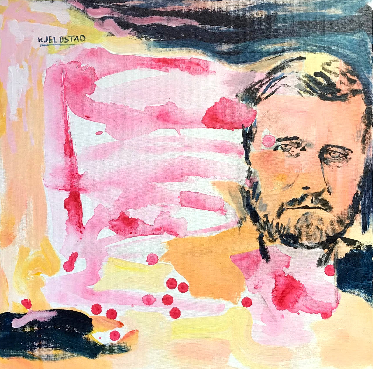Acrylics on canvas, 50 x 50 cm, 2020. The portrait of Ulysses S Grant is painted after a photo on Wikipedia. The photo, according to Wikipedia, origins from The Photographic History of The Civil War in Ten Volumes: Volume Three, The Decisive Battles. The Review of Reviews Co., New York. 1911. p. 22.